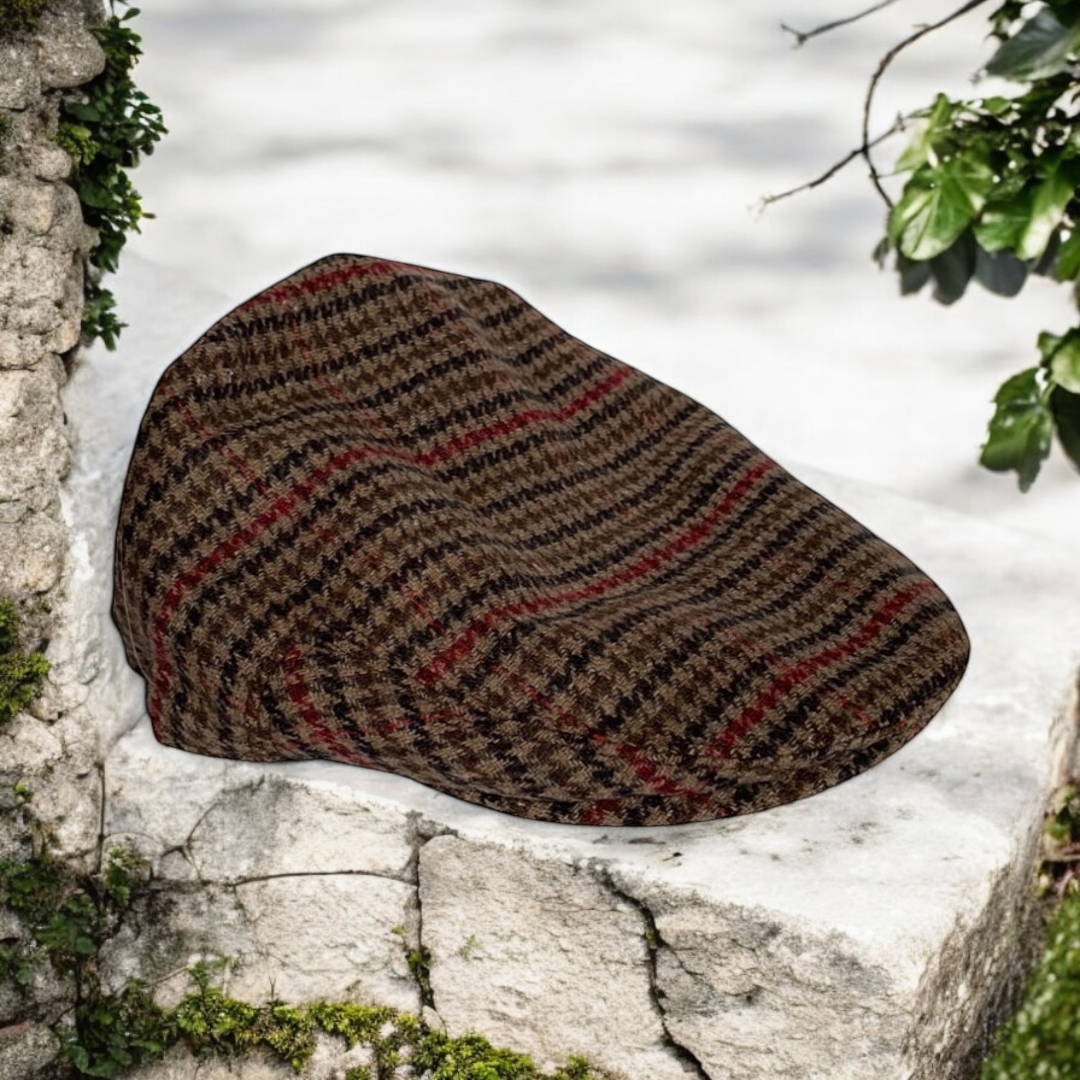 Brown Wool Mix Tweed Flat Cap With Warm Tones (CFFC7002)
