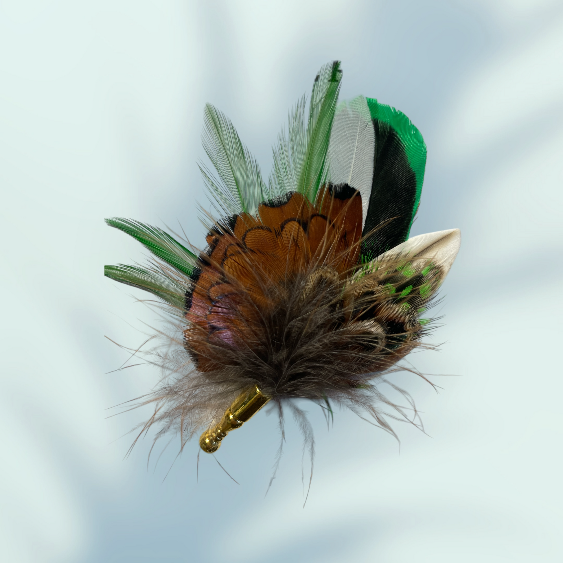 Green & Natural Feather Lapel Pin in a Gold Clasp (CFLP179)