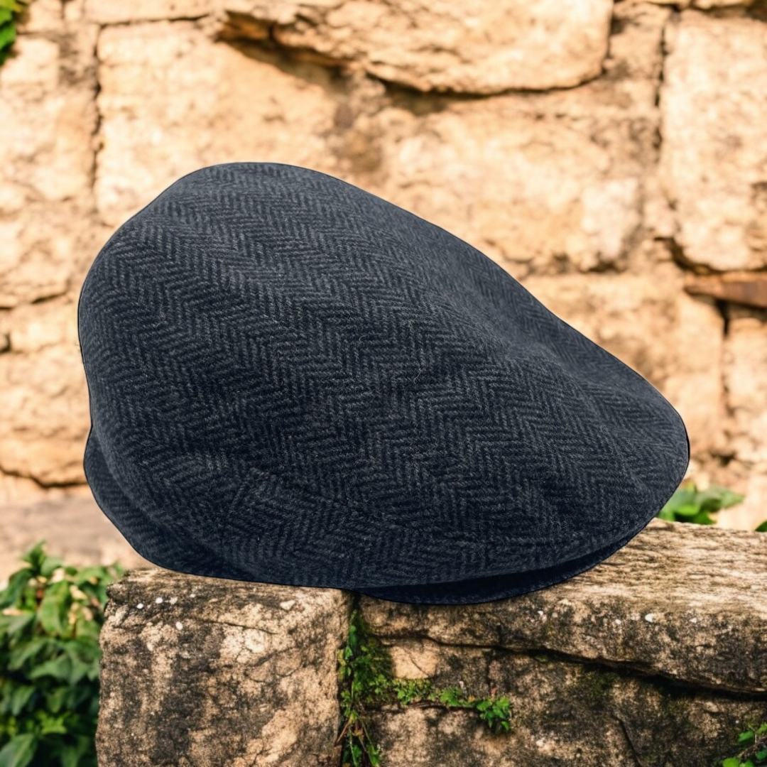 Dark Grey Herringbone Flat Cap (CFFC7010)