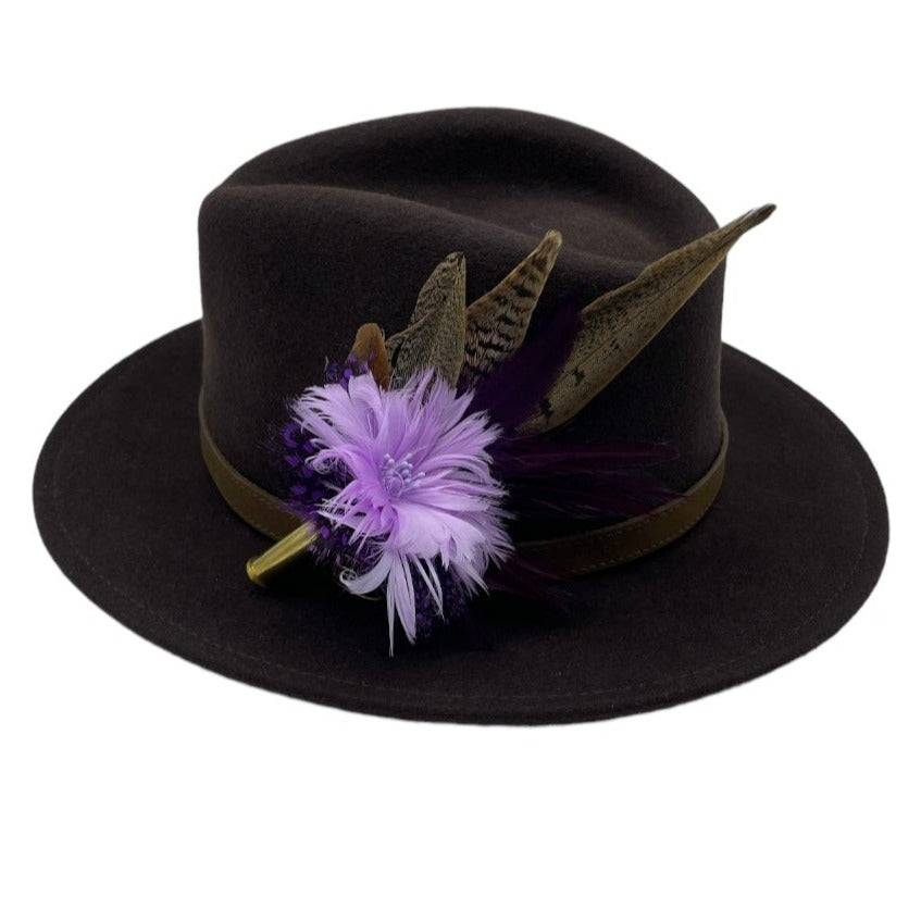 Purple Tones & Natural Feather Hat Pin (CFP547)
