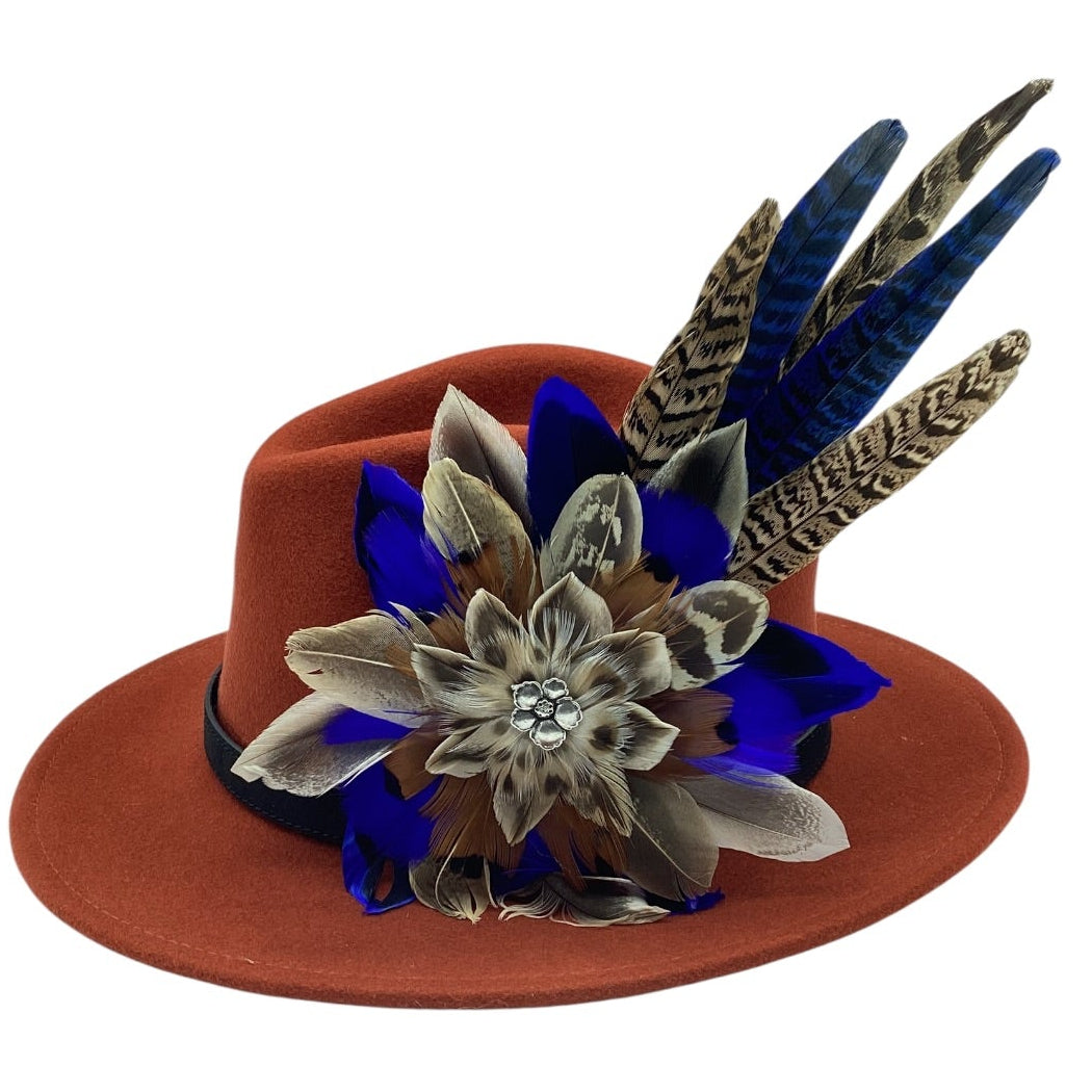 Royal Blue & Natural Feather Hat Pin (CFP823)