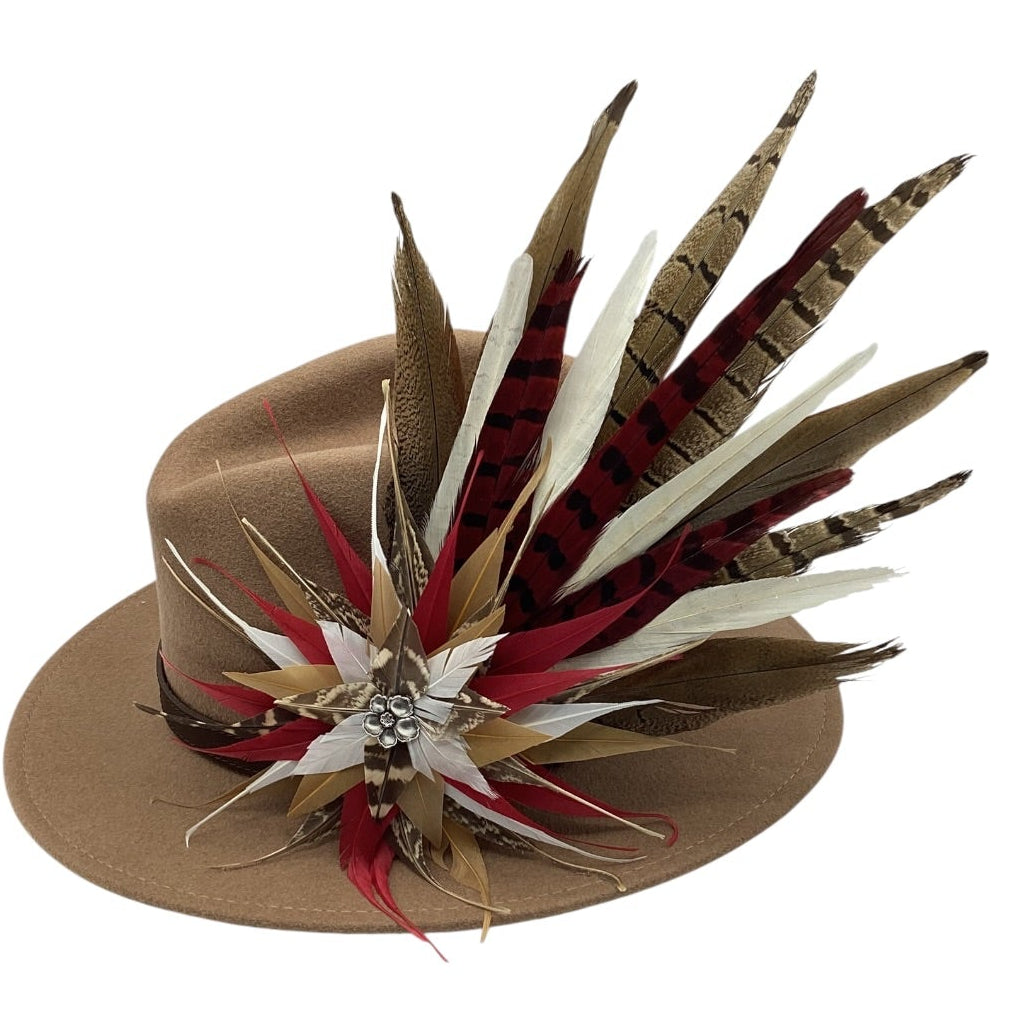Red, Gold, white and Natural Feather Hat Pin (CFP839)